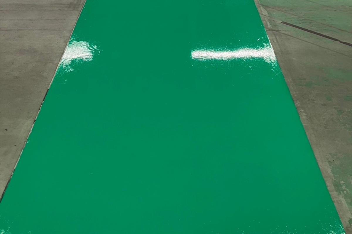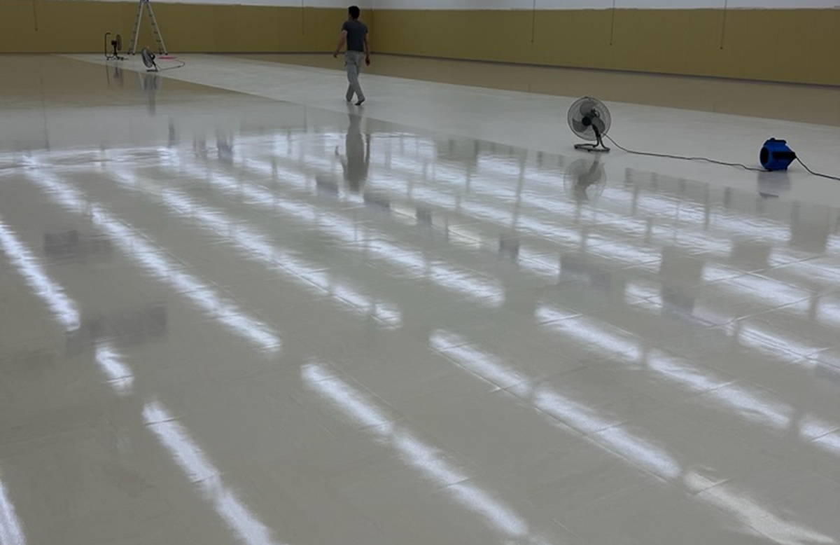 塗り床は硬度が低いため、台車や商品の引きずりによってキズが付きやすいですが、ファインコートを施工することで高硬度の被膜を形成し、キズや汚れを防ぎます。
